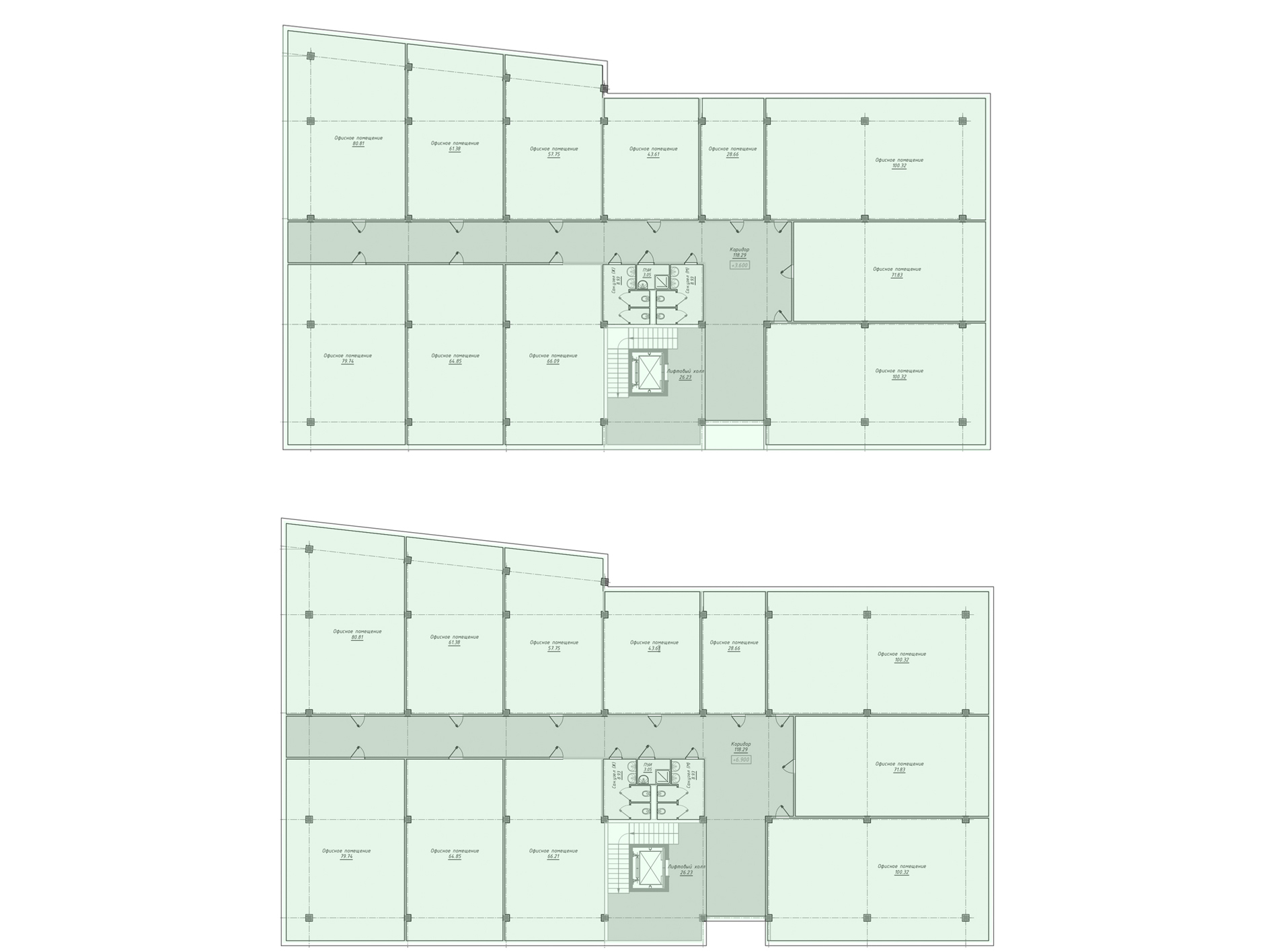 - Возможность сочетать кабинетные зоны и открытый формат внутри одного блока